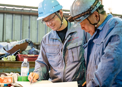 私たちの業界は、よく「3Kの仕事」と言われます。それだけに私たちは、安心・安全で働きやすい環境をつくることに注力しています。ハード面においては、きれいな事務所を構え、田野工場を新設することで資材の積み上げを減らして作業環境の安全性向上と効率化を実現しました。