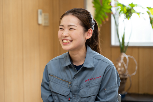 コツコツと仕事と向き合える、根気強い人がオーバル・テックには向いていると思っています。わからないことは私をはじめ、周りの先輩も丁寧に教えてくれますし、お互いのフォローも欠かしません。
