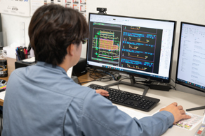 施工図では設計図の段階ではわからなかった箇所や接合部分や取付部分の状態を、実際にどういう順番でくみ上げていくか詳しく決めながら進めます。高い精度の施工図を起こせるように、提案と相談を繰り返し行います。